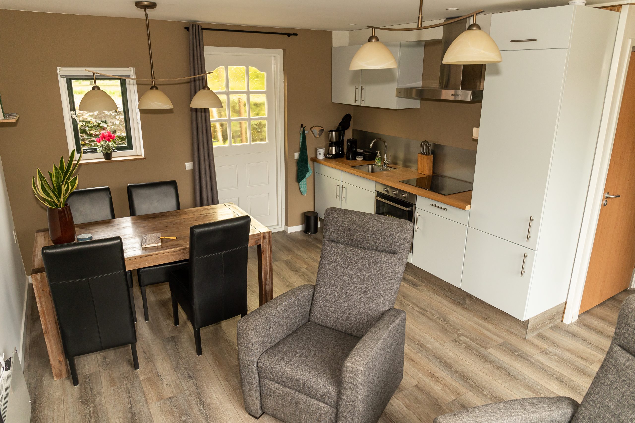 Mooie woon-eetkamer met keuken inclusief moderne apparatuur en Airco