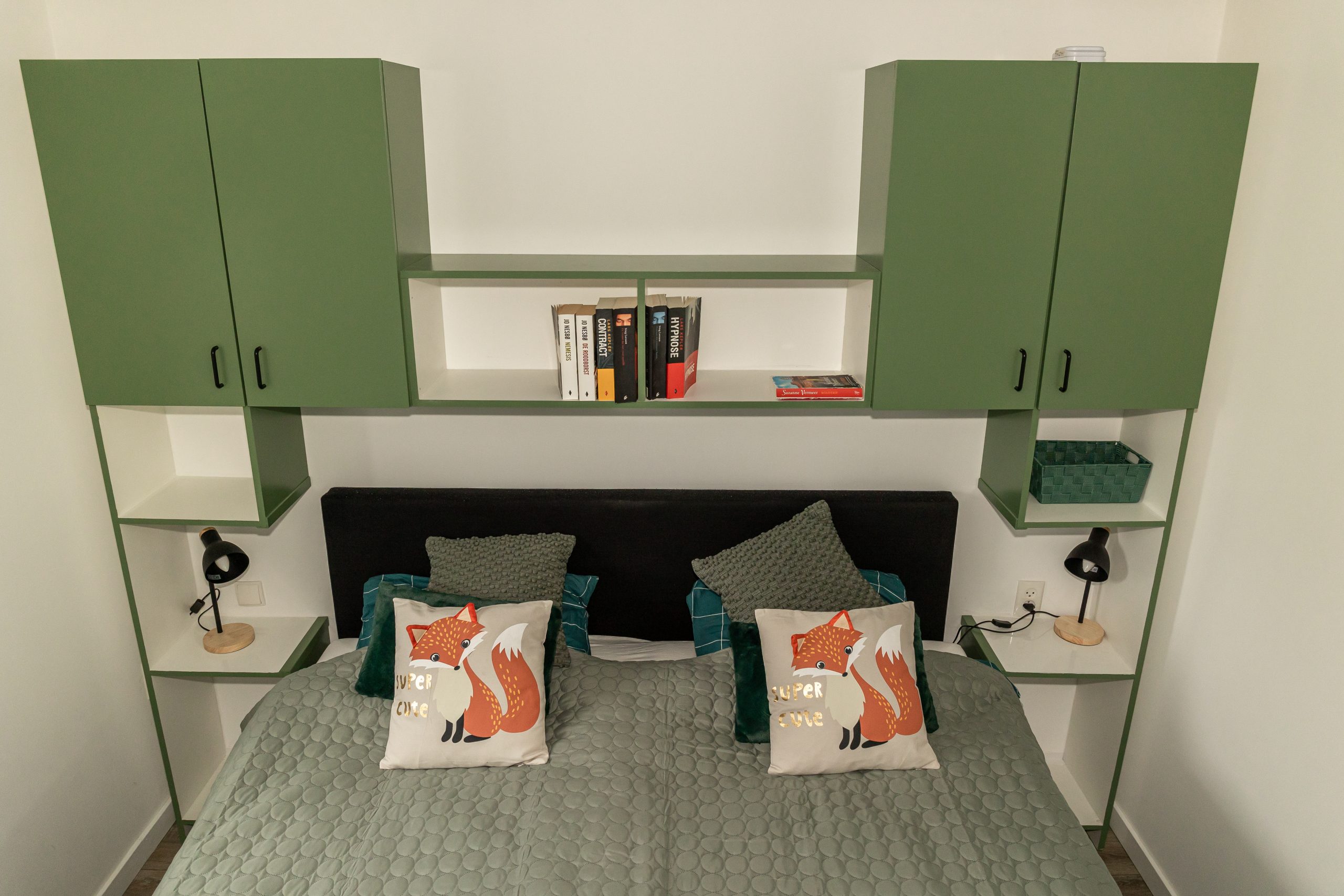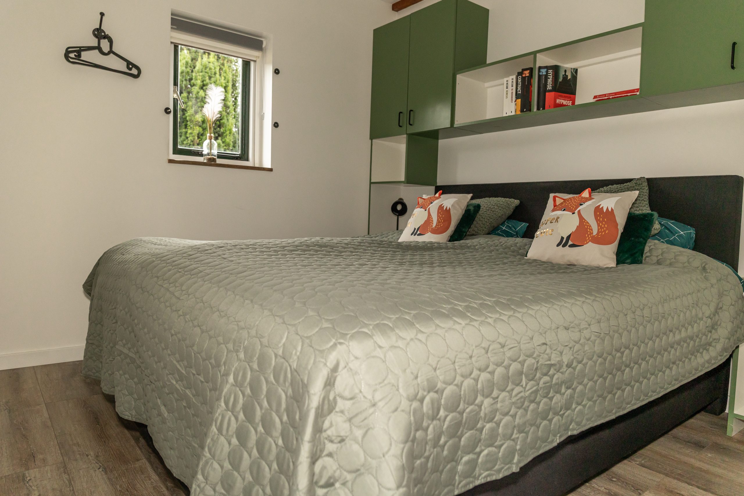 Aparte slaapkamer met een ruim 2 persoons bed van 2.10 x 1.80m