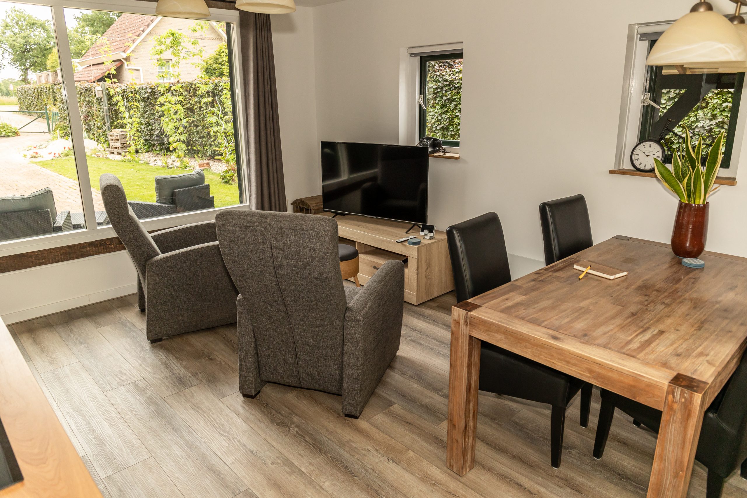Aan de achterzijde kunt u genieten van de rust, ruimte, de vogels (en kippen) en de koeien die soms langslopen in het natuur gebied. Aan de voorzijde hebben we ook een fijn zitje, waar de middag en avond zon zorgt voor heerlijke rust bij een kopje koffie of …..